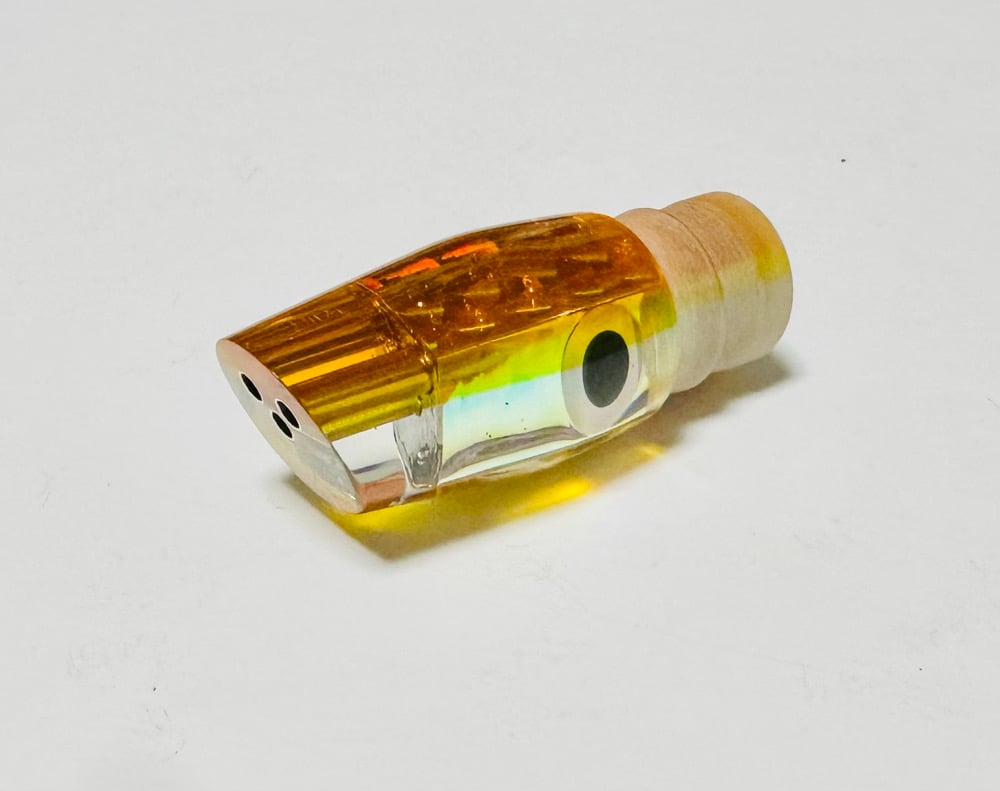 7" REVERSE TAPER CUT FACED 2 HOLE SQUARE INSERT, IS A MUST HAVE IN YOUR PATTERN. THE JETS WILL MAKE THIS LURE "SMOKE" AND LEAVE A TRAIL TO CALL UP ANY FISH.